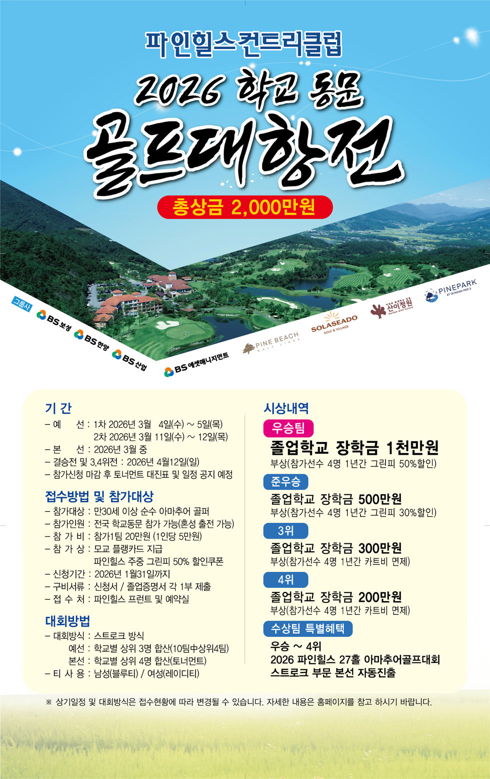 파인힐스 2026년 학교 동문 골프 대항전 안내