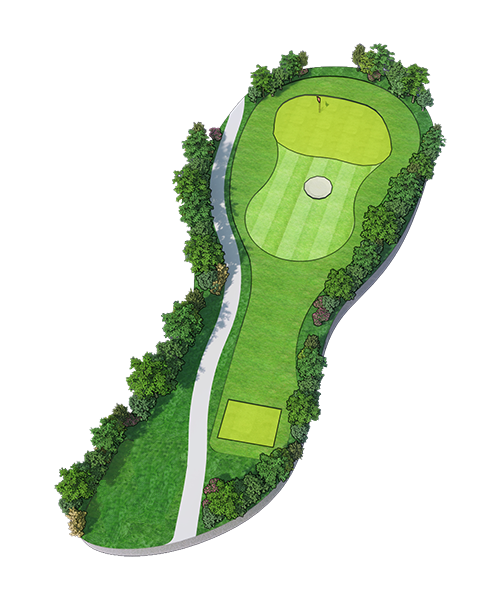 그린보다 큰 벙커가 그린 우측에 도사리고 있다. 그린 앞 쪽은 긴 어프로치가 가능한 공간이 있어 다양한 플레이가 가능하다. 그린은 여느 그린보다 크게 조성되어 있고 그린 후면은 흘러내려 또 다른 어프로치 공간이 있다. 그린 주변과 어프로치 환경은 단연코 시그니처 홀이다. 이 홀을 운영하지 않을 경우에는 다양한 어프로치 레슨과 연습 공간으로 활용 가능하다.