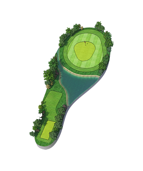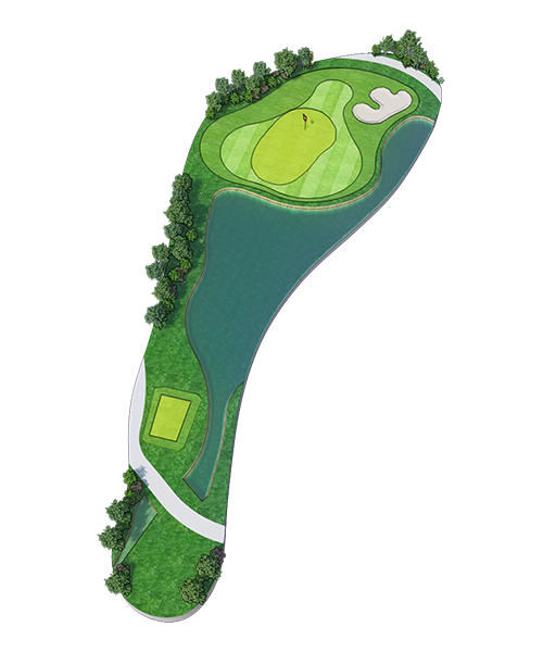 코스의 마지막홀이다. 그래서 더욱 도전적이면서도 모험적인 홀이다. 워터 헤저드를 넘겨 쳐야 하고 그린 왼쪽은 수양버들이 병풍처럼 펼쳐져 있다. 그린 후면은 그린과 폰드 사이에 벙커가 위치해 있다. 그린과 벙커, 그리고 워터 헤저드 풍경이 파노라마 필름과 같은 고전적인 아름다움을 선사한다. 그린 뒤 식재된 조경수와 클럽하우스 지붕이 한눈에 펼쳐진 풍경이 무척이나 이국적이다. 그린 양 옆으로는 어프로치 공간이 있어 거리 계산만 정확하게 한다면 안정적인 마무리 홀이 될 것이다.