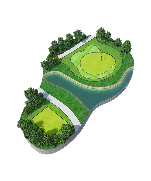2단 그린으로 난이도를 적용하였다. 아랫단과 윗단의 단차는 0.5미터이며 각 단은 라이가 거의 없어 퍼팅 공략이 용이하다. 길게 늘어진 그린으로 정확한 거리 공략이 필요하다. 그린에 올라가지 못하더라도 그린 앞 충분한 어프로치 공간이 있어 안정적인 홀 공략이 용이하다. 티에서 그린을 바라볼 때 그린 후면의 아파트 풍경과 아카시아 나무가 병풍처럼 감겨 있어 도심에서 즐기는 이색적인 감흥을 느낄 수 있을 것이다.