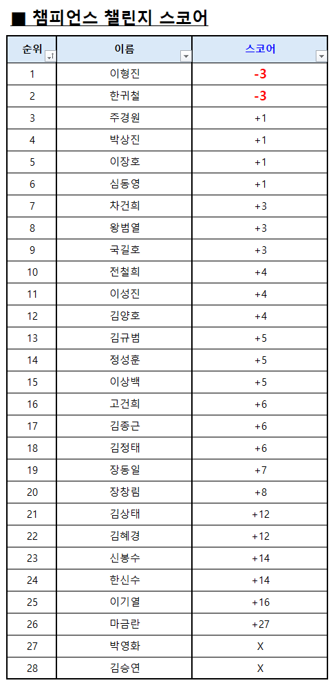 파인파크 5회 챔피언스 챌린지 스코어 집계표