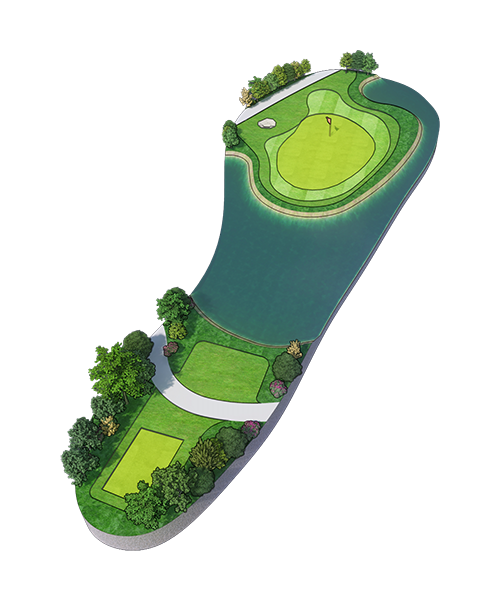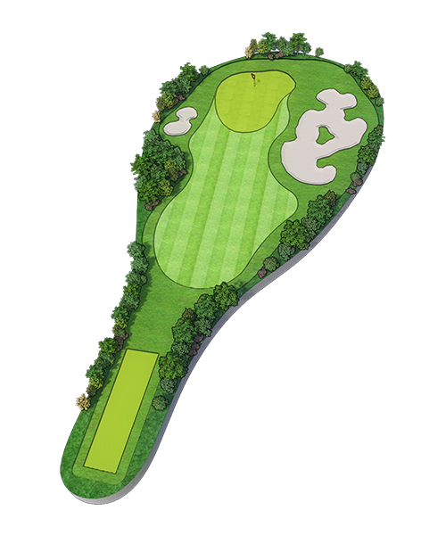 그린보다 큰 벙커가 그린 우측에 도사리고 있다. 그린 앞 쪽은 긴 어프로치가 가능한 공간이 있어 다양한 플레이가 가능하다. 그린은 여느 그린보다 크게 조성되어 있고 그린 후면은 흘러내려 또 다른 어프로치 공간이 있다. 그린 주변과 어프로치 환경은 단연코 시그니처 홀이다. 이 홀을 운영하지 않을 경우에는 다양한 어프로치 레슨과 연습 공간으로 활용 가능하다.